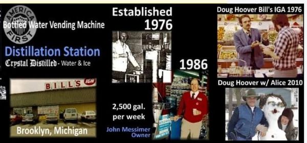We started out in the water distillation business, providing clean drinking water at a time when NO drinking water was sold anywhere in America. The only water sold in grocery stores was distilled water for steam irons and car batteries. We installed America's first bottled water vending machine, DISTILLATION STATION, in Bill's IGA store in Brooklyn, MI in March of 1975. Eight years later Glacier Water followed with their vending machines. Two years later, in 1985, Dr. Gene Shaparenko opened the first water store, located in Fresno, California.